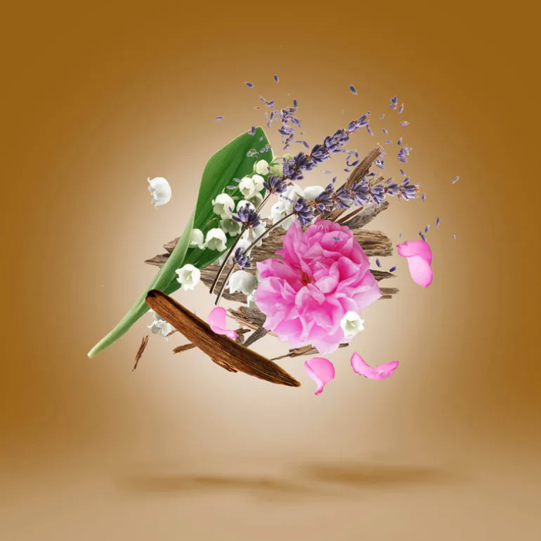 Notes de cœur : bois de cèdre, muguet et rose bulgare