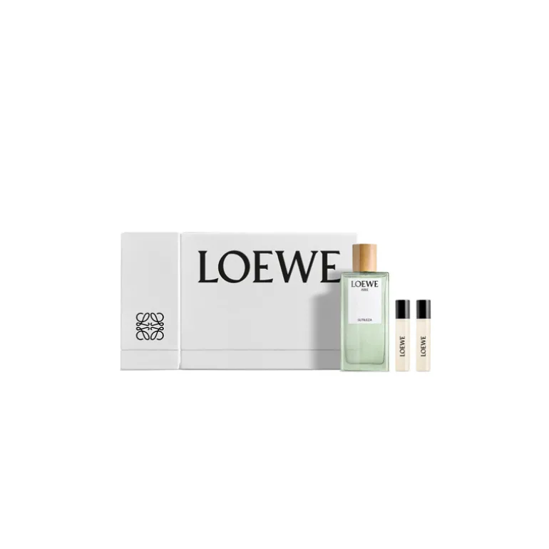 Loewe Aire Sutileza Edt Set. Ce coffret exclusif contient : LOEWE Aire Sutileza EDT 100ml, un flacon de 10ml assorti et un flacon de 10ml d’un parfum complémentaire, LOEWE Aire Anthesis EDP.