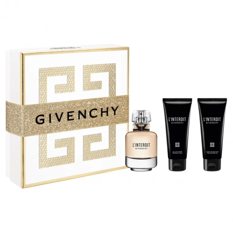 Pour les fêtes de fin d’année, offrez un mélange d’élégance singulière et de féminité exaltante avec un coffret cadeau de parfum Givenchy pour femme comprenant L’Interdit Eau de Parfum 80ml, un lait hydratant pour le corps 75ml et une huile de douche parfumée 75ml.