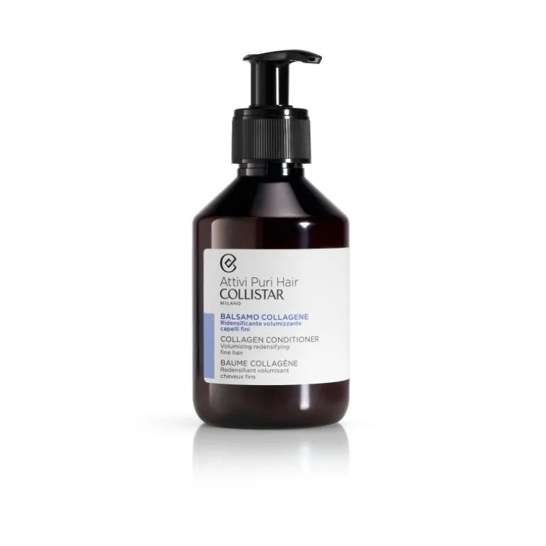 Collistar Collagen Redensifying Conditioner. Baume au collagène végétal, une molécule de protéine qui donne du corps et de la densité aux cheveux fins et peu volumineux, en augmentant le diamètre de la tige capillaire.