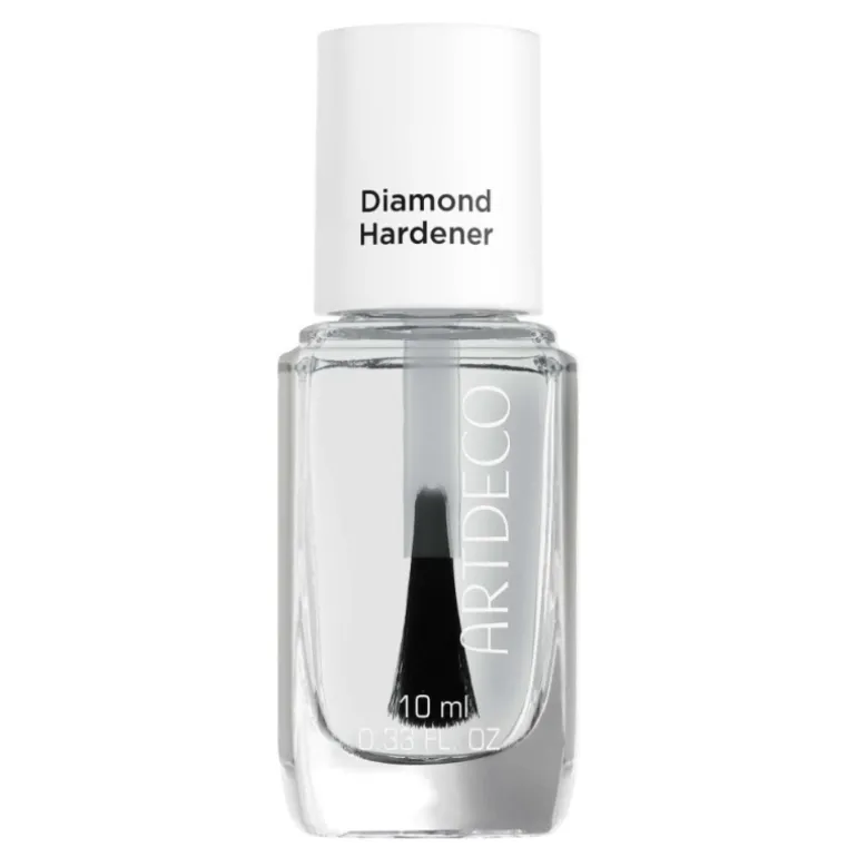 Le Diamond Hardener, avec sa combinaison exceptionnelle d’actifs issus de l’aldéhyde hexanal et de la poudre de diamant, renforce les ongles tout en leur apportant une brillance éclatante.