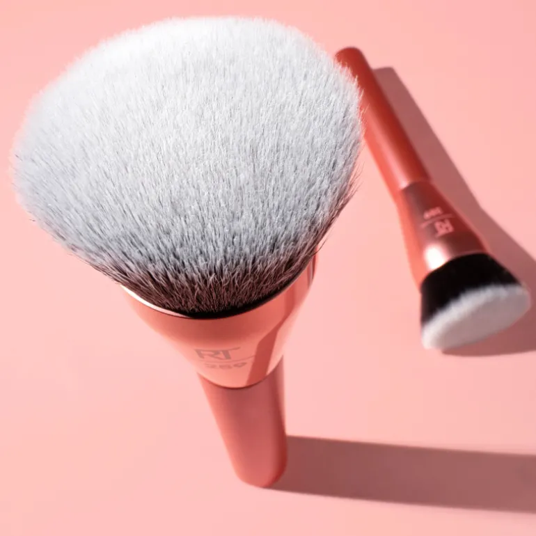 Base ronde Glow de Real Techniques. Le pinceau de maquillage avec la nouvelle tête de pinceau plate estompe le fond de teint pour un fond de teint uniforme et lisse avec un fini aéré.
