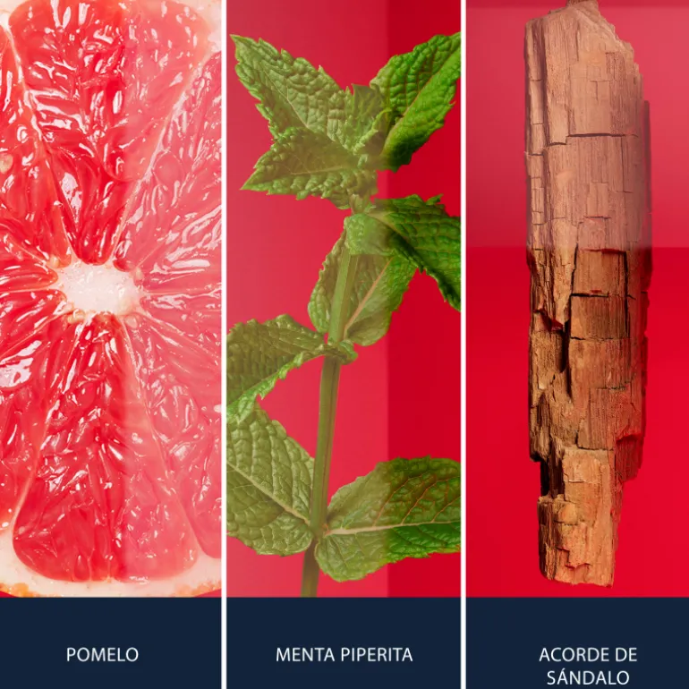 Les notes de tête de pamplemousse piquant et de citron vert vibrant se mêlent à la menthe poivrée et aux baies de genièvre au cœur du parfum pour apporter une bouffée d’énergie.