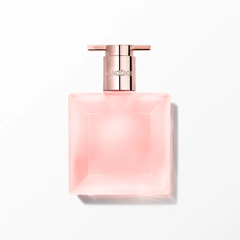 Le flacon iconique, qui fait partie de la famille Idôle, avec son verre dépoli, caresse les sens d’un toucher doux et exclusif.