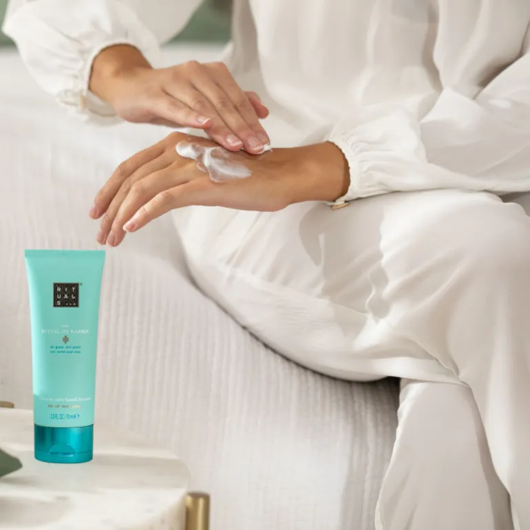La lotion Ritual of Karma, qui contient plus de 95 % d’ingrédients d’origine naturelle, a été spécialement conçue pour apaiser et adoucir les mains.