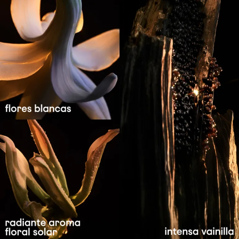 Notes de cœur : tubéreuse éblouissante, jasmin et ylang ylang radieux.