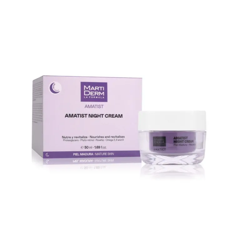Amatist Night Cream, con proteoglicanos, phyto-retinol, rosa mosqueta y omega 3, 6 y 9 nutre y revitaliza la piel