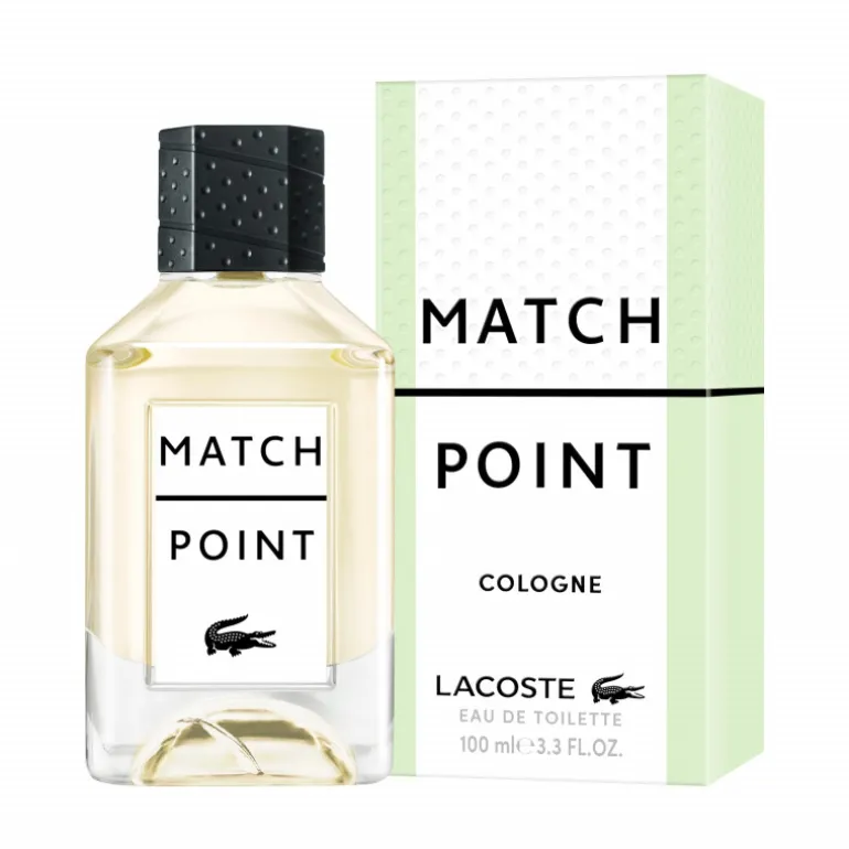 Match Point Cologne pour homme est présenté dans un élégant flacon inspiré des codes du tennis. La base concave est marquée par l’impact décisif de la balle, tandis que le bouchon vert évoque la raquette de tennis du légendaire René Lacoste.