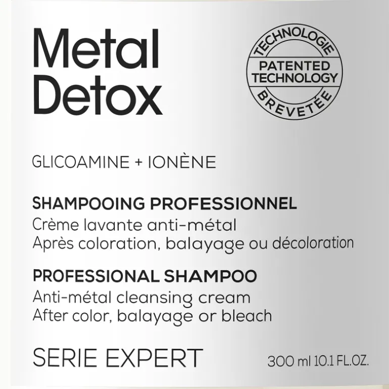 Le shampooing Metal Detox à la glycoamine neutralise le métal à l’intérieur de la fibre capillaire et détoxifie les cheveux.
