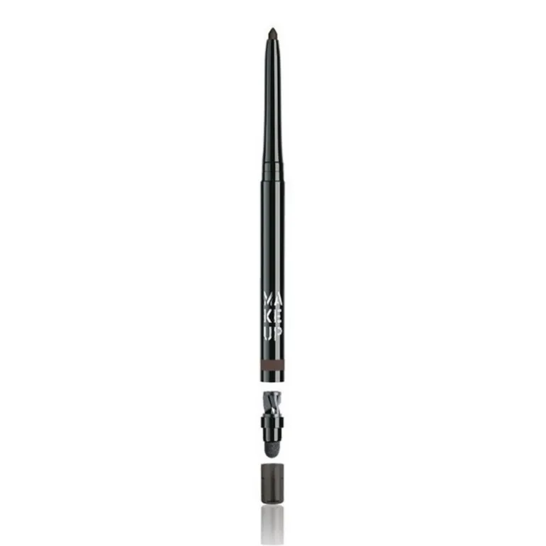 Eyeliner longue tenue, hautement pigmenté et rétractable. Comprend un taille-crayon et un smudger.