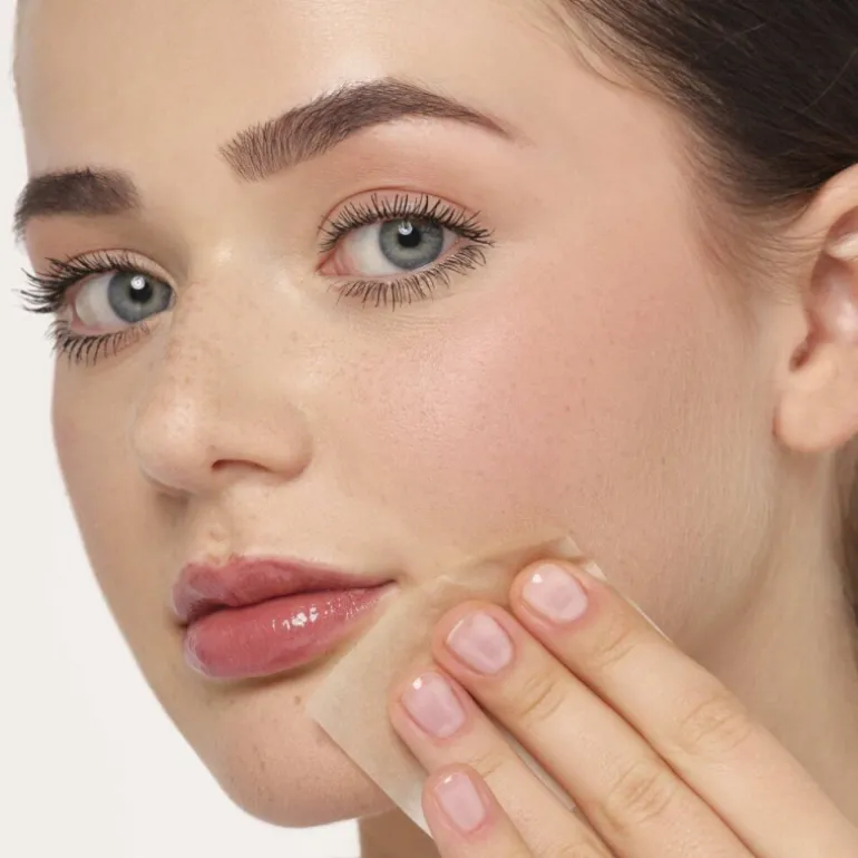 Placez le papier sur les zones brillantes et absorbez l’excès de sébum en tapotant doucement.