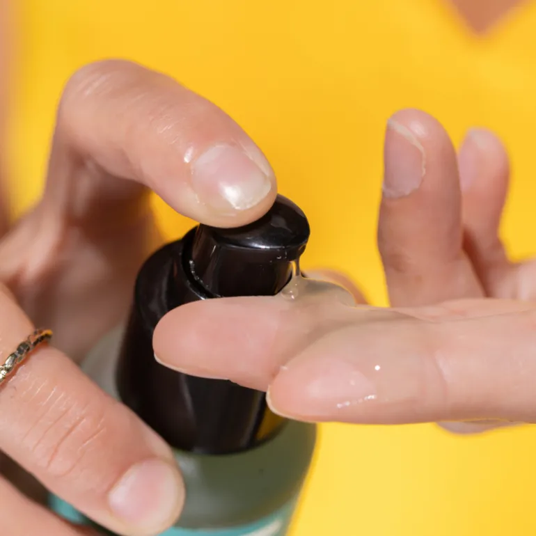 3. Répartir une seule impulsion de produit sur le visage et le cou et masser délicatement, en évitant le contour des yeux, toujours de l’intérieur vers l’extérieur, jusqu’à absorption complète du produit.