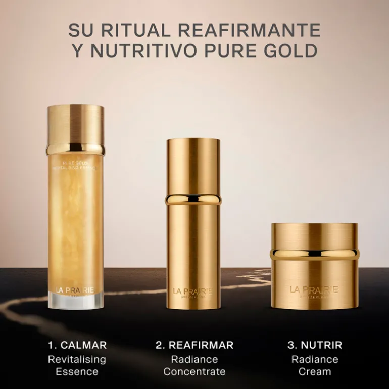 Appliquer par légères pressions jusqu’à absorption complète. Poursuivez avec les soins contour des yeux, le sérum visage et la crème hydratante de la Collection Pure Gold de La Prairie.