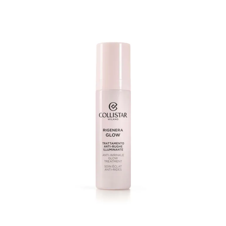 Collistar Rigenera Glow Illuminating Anti-Wrinkle Treatment. Une texture fluide rose ultra-sensorielle qui restaure l’éclat naturel de la peau et lui donne immédiatement une apparence plus lumineuse.
