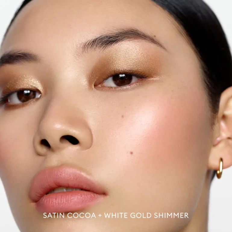 L’ombre à paupières compacte scintillante offre une lumière diffuse, portée seule ou par-dessus le fond de teint crème.