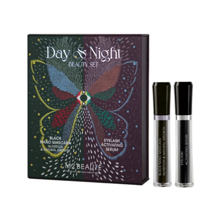 M2 Beauté Eyelash Activating Serum: AQUA, PHENOXYETHANOL, C12-15 ALKYL BENZOATE, CAPRYLYL GLYCOL, TRIETHANOLAMINE, ACRYLATES/C10-30 ALKYL ACRYLATE CROSSPOLYMER, PANTHENOL, BIOTIN, ALCOHOL, NORBIMATOPROST, SODIUM PCA, SODIUM LACTATE, ARGININE, SODIUM HYALURONATE, ASPARTIC ACID, PCA, SODIUM PHOSPHATE, GLYCINE, ALANINE, SERINE, HYDROLYZED GLYCOSAMINOGLYCANS, VALINE, ISOLEUCINE, PROLINE, THREONINE, HISTIDINE, PHENYLALANINE. M2 Beauté Black Nano Mascara: AQUA, CERA ALBA, BUTYLENE GLYCOL, POLYURETHANE-35, HELIANTHUS ANNUUS SEED CERA, PVP, PALMITIC ACID, SODIUM STEAROYL LACTYLATE, STEARIC ACID, HECTORITE, LACTIS SERUM PROTEINUM, GLYCERYL STEARATE S, PHENETHYL ALCOHOL, ISOPROPYL MYRISTATE, ACACIA SENEGAL GUM, PANTHENOL, SHOREA ROBUSTA RESIN, RHUS VERNICIFLUA PEEL CERA, COCO-GLUCOSIDE, VACCINIUM MACROCARPON FRUIT EXTRACT, LINUM USITATISSIMUM SEED EXTRACT, LIGUSTRUM LUCIDUM FRUIT EXTRACT, CENTELLA ASIATICA LEAF EXTRACT, GLYCYRRHIZA GLABRA ROOT EXTRACT, ALCOHOL, GLYCERIN, ASCORBYL PALMITATE, TOCOPHEROL, XANTHOPHYLLS, CI 77499
