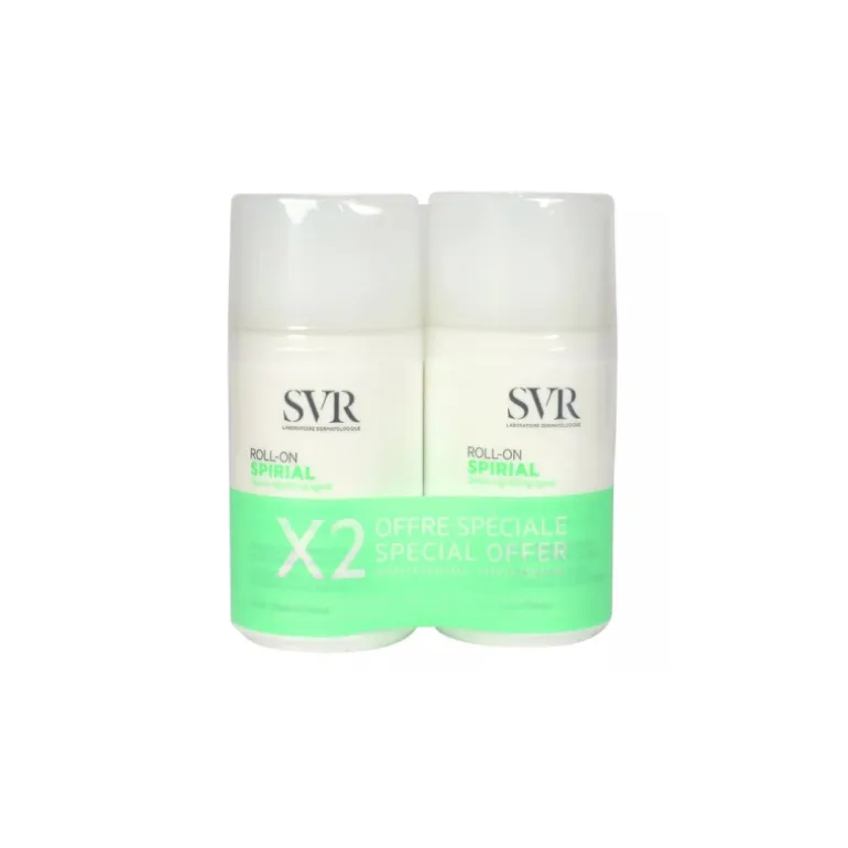 Svr Spirial Duplo Roll-on Deodorant est un anti-transpirant intense avec une efficacité de 48 h(1), même dans les situations extrêmes (sport, stress…). C’est un produit haute tolérance formulé avec une forte concentration d’agents sudorégulateurs qui contrôlent la transpiration, absorbent l’humidité et luttent contre les mauvaises odeurs. Sa texture non collante sèche rapidement et laisse une peau douce sans traces blanches. Sans parfum.