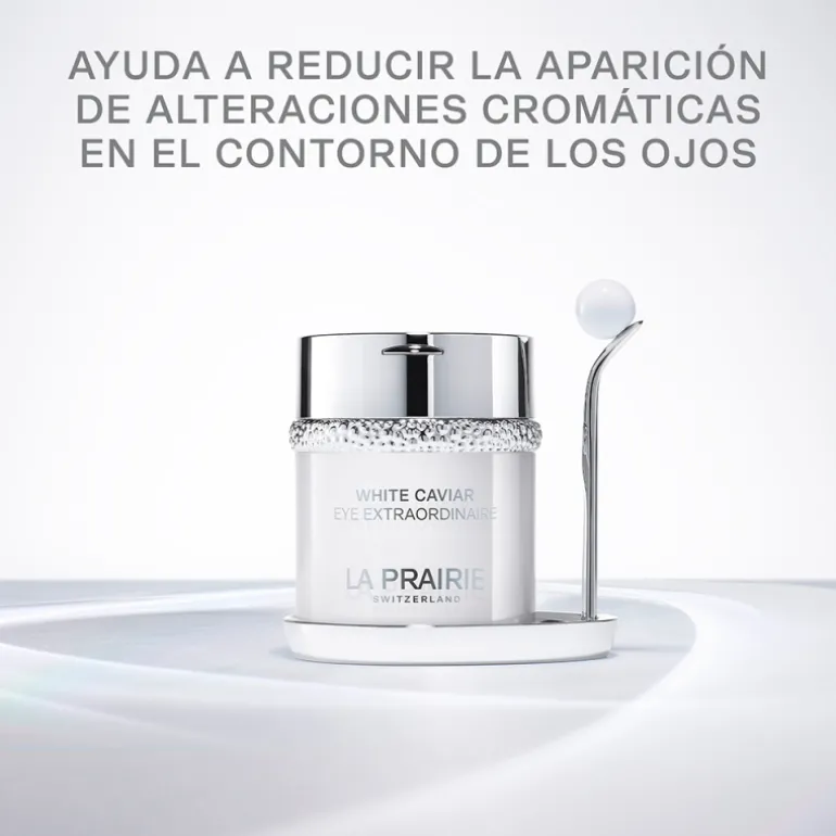La crème White Caviar Eye Extraordinaire de La Prairie a un effet transformateur qui combat les taches et les imperfections cutanées, unifie le teint et illumine la peau grâce à la lumière contenue dans sa formule enrichie en Lumidose, le plus puissant inhibiteur de la tyrosinase, l’enzyme responsable de la formation de la mélanine.