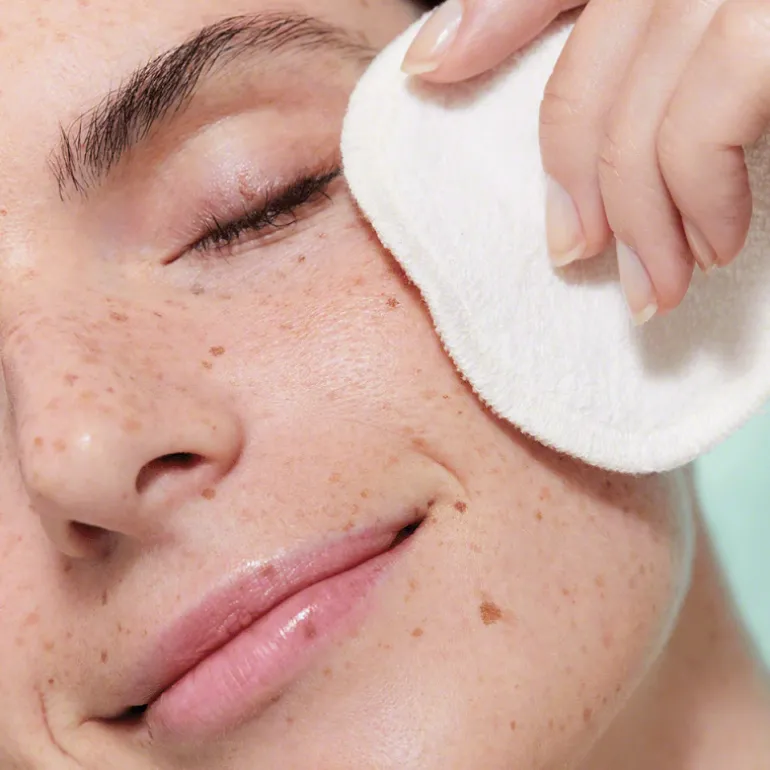 Passez ensuite délicatement le coton sur la zone sans frotter. Il n’est pas nécessaire de rincer.