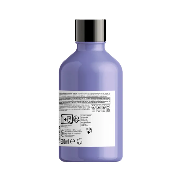 L’Oréal Professionnel Blondifier Cool Shampoo est un shampooing violet créé pour matifier et neutraliser les tons jaunâtres qui peuvent apparaître dans les cheveux blonds froids.