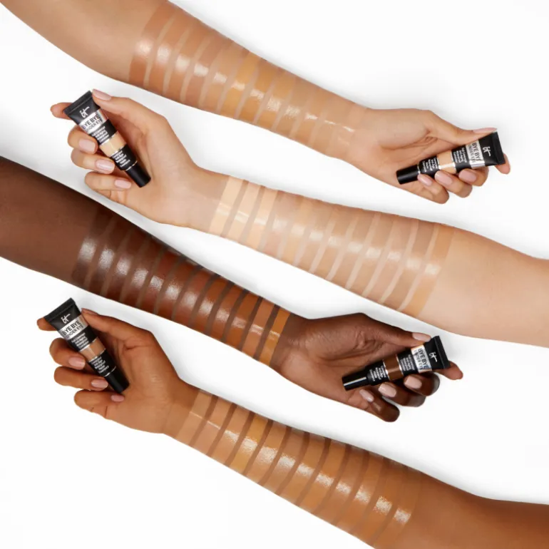 Réchauffez une petite quantité entre le bout des doigts, appliquez sur la peau avec l’annulaire et estompez à l’aide de votre pinceau iT COSMETICS préféré.