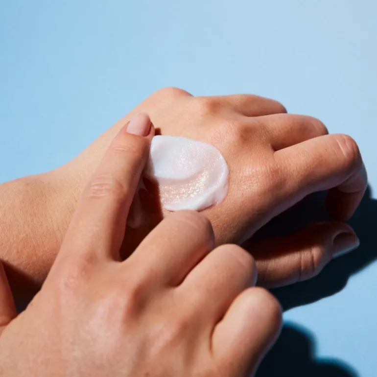ÉTAPE 1 : Faites mousser avec de l’eau pour transformer la texture crémeuse en une mousse nettoyante riche et dense qui ne dessèche pas la peau.