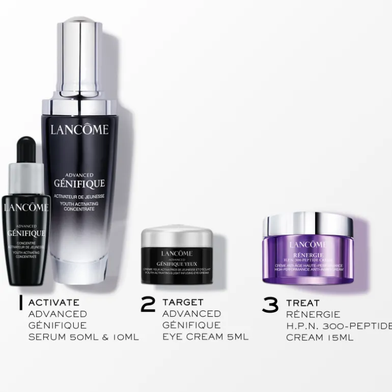 Répartir par mouvements de lissage, du centre du visage vers l’extérieur. Advanced Génifique est automatiquement dosé avec la quantité nécessaire pour activer la jeunesse du visage, du cou et du décolleté.