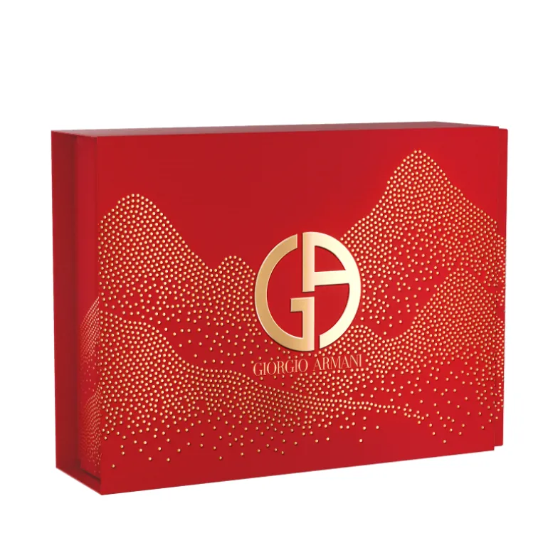 Un cadeau couture, créé avec du papier de haute qualité et imprimé avec des perles gaufrées en 3D sur le rouge caractéristique d’Armani. Un coffret pensé et conçu pour être conservé et réutilisé.