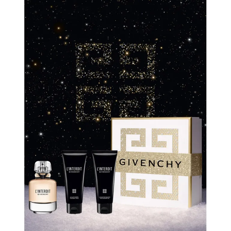 Pour les fêtes de fin d’année, offrez un mélange d’élégance singulière et de féminité exaltante avec un coffret cadeau de parfum Givenchy pour femme comprenant L’Interdit Eau de Parfum 80ml, un lait hydratant pour le corps 75ml et une huile de douche parfumée 75ml.