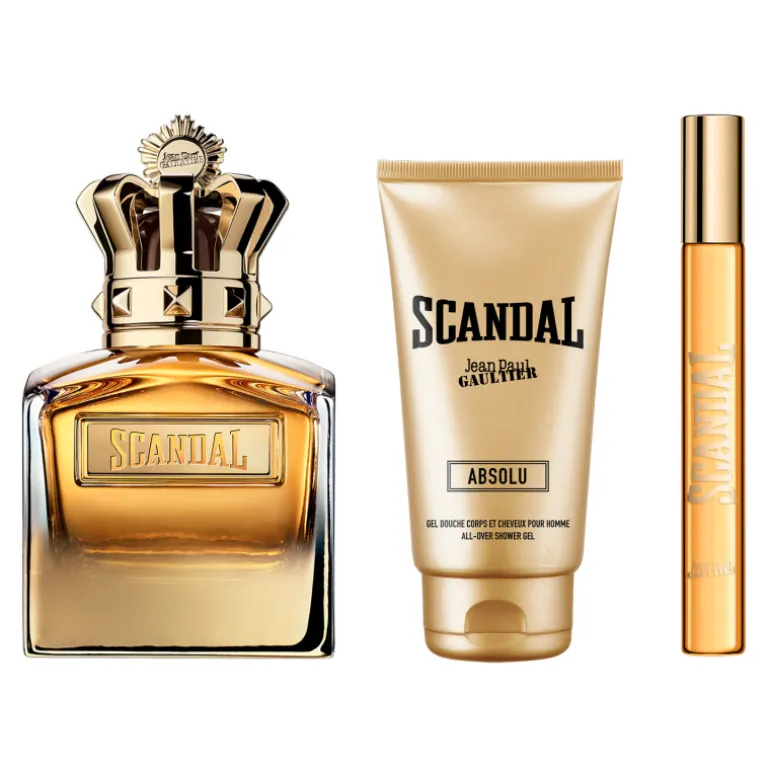 Ce coffret contient un Scandal Absolu Parfum Concentré For Him 100 ml, un Gel de Bain 75 ml et un format de voyage 10 ml.