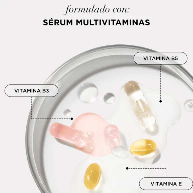 Enrichi en sérum multivitaminé et en acide hyaluronique, il hydrate pendant 24 heures, aidant à repulper et à lisser les rides d’expression.