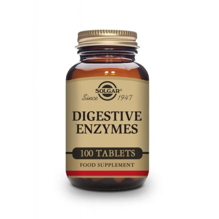 Solgar Digestive Enzymes est un complexe unique qui fournit une combinaison spéciale : x4 pancreatin concentrate qui fournit de l’amylase, de la protéase et de la lipase, plus de la papaïne, de l’extrait de pepsine, du chlorhydrate de bétaïne, de l’extrait de bile de bœuf et de l’amylase d’Aspergillus Oryzae.