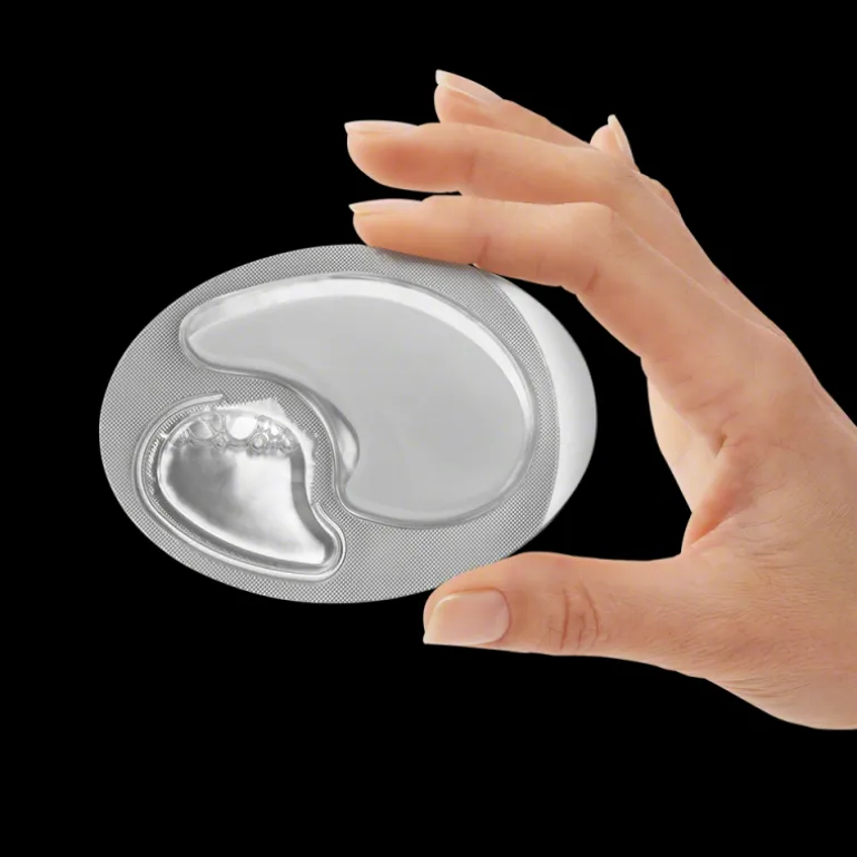 Pressez la capsule de l’extrémité vers le centre jusqu’à ce que le patch soit rempli de liquide et activé. Retournez-le et retirez la feuille d’aluminium. Appliquez le patch sous l’œil pendant 15 à 20 minutes. Retirer et faire suivre de la crème appropriée.