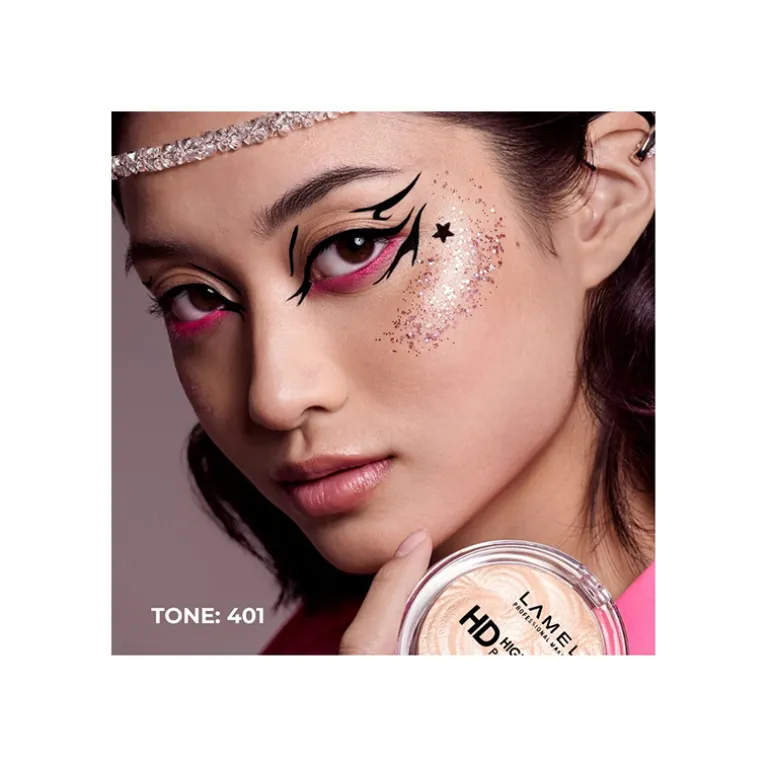 Lamel HD Highlighting Powder. La poudre HD Highlighting Powder donne à la peau un éclat luxueux et léger tout au long de la journée.