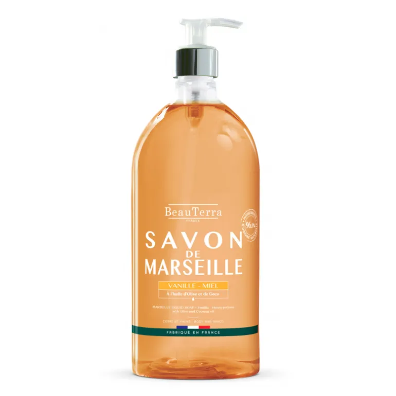 Le savon liquide de Marseille est un savon naturel enrichi en huile d’olive qui nourrit, protège et nettoie en douceur la peau des mains et du corps.