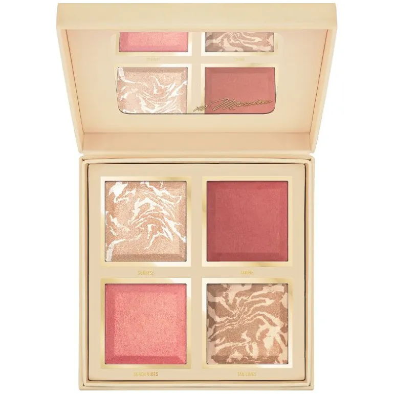 Cette palette visage combine quatre teintes différentes pour un teint impeccable avec un fini éclatant à la Maxim.