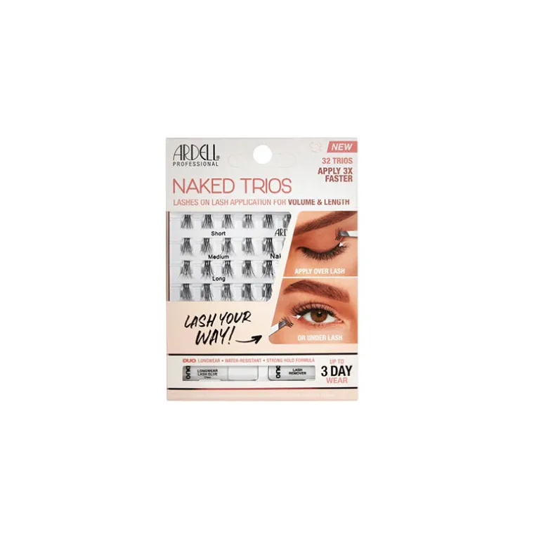 Ardell Naked Lashes Kit Trios. Kit de trios de cils individuels contenant 32 trios, 1 adhésif et 1 dissolvant.