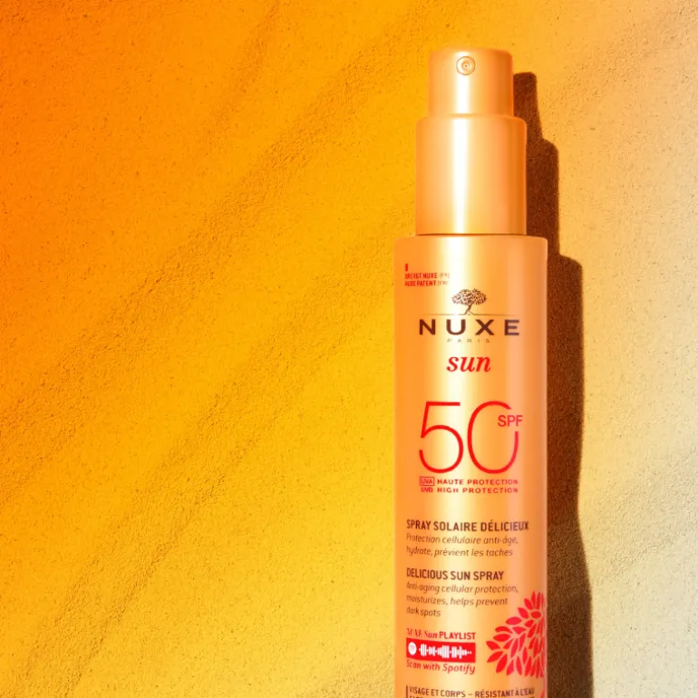 Avant l’exposition, appliquez généreusement le spray solaire Nuxe Sun SPF 50 :