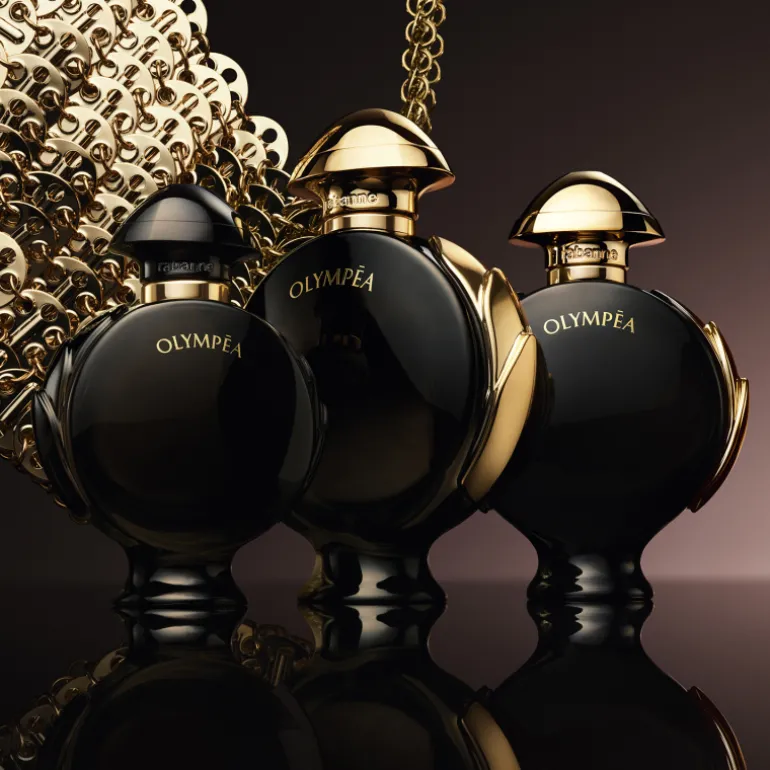 OLYMPÉA PARFUM de Rabanne fait briller son aura divine pour révéler la déesse qui est en elle.