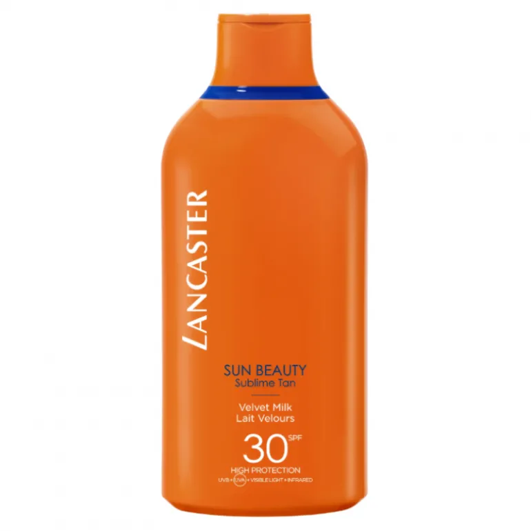 – Avec le lait velouté SPF30 de Lancaster Sun Beauty pour le corps, vous bénéficiez d’une protection à large spectre qui vous aide à développer un bronzage doré durable. Sa formule unique associe notre technologie exclusive Full Light Technology, qui cible 100 % des rayons du soleil, et notre complexe Tan Activator amélioré – profitez de ce bronzage doré !