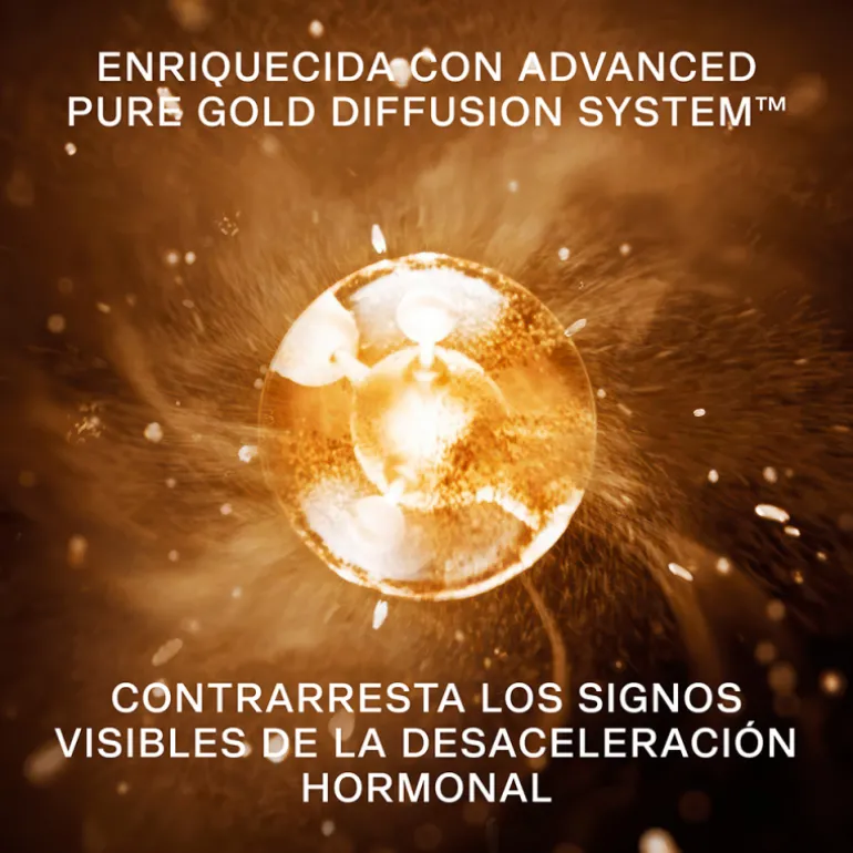 Cette essence, dotée du Système de Diffusion Or Pur™, est conçue pour activer les processus qui renforcent la structure de la peau, atténuer les signes visibles des changements hormonaux et diffuser des ingrédients réparateurs qui retiennent l’hydratation et améliorent le confort cutané.