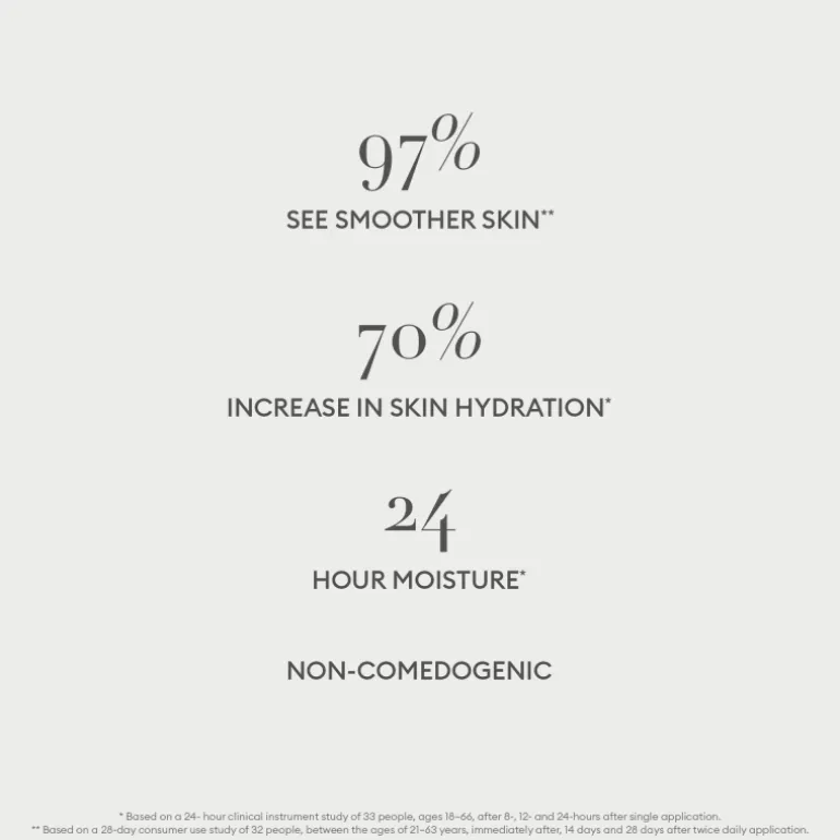 Il adoucit et repulpe, créant une texture lisse qui reflète la lumière et un teint plus uniforme.
