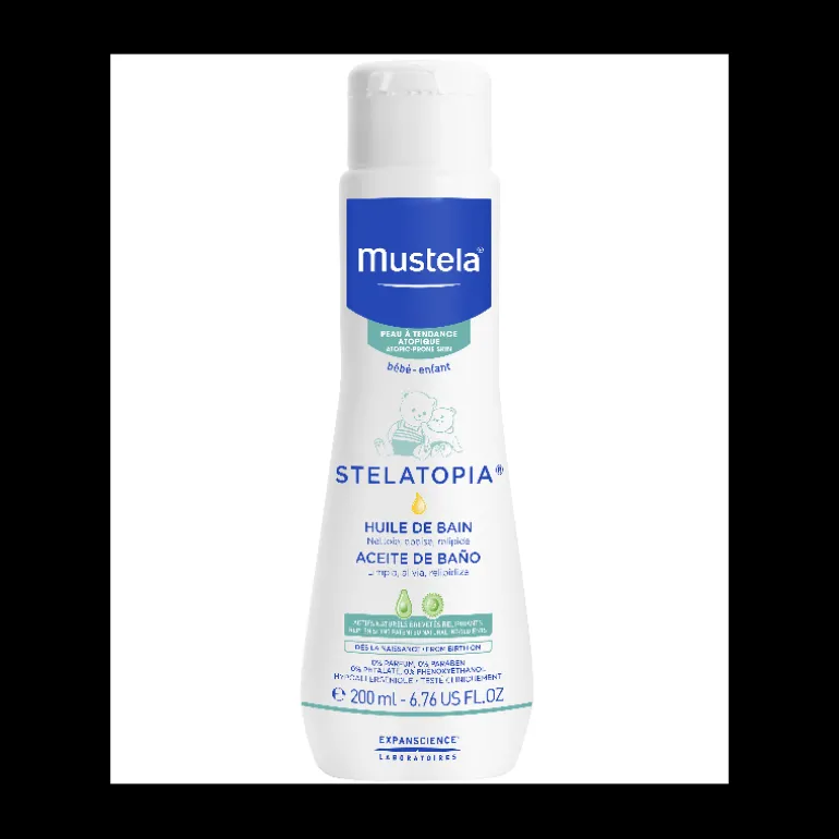L’huile Mustela Stelatopia nettoie en douceur et laisse un film protecteur sur la peau des plus petits, sans l’agresser ni provoquer d’irritation du derme. Il a une action calmante grâce au distillat d’huile d’amande douce et d’huile de tournesol hypolipémiants.