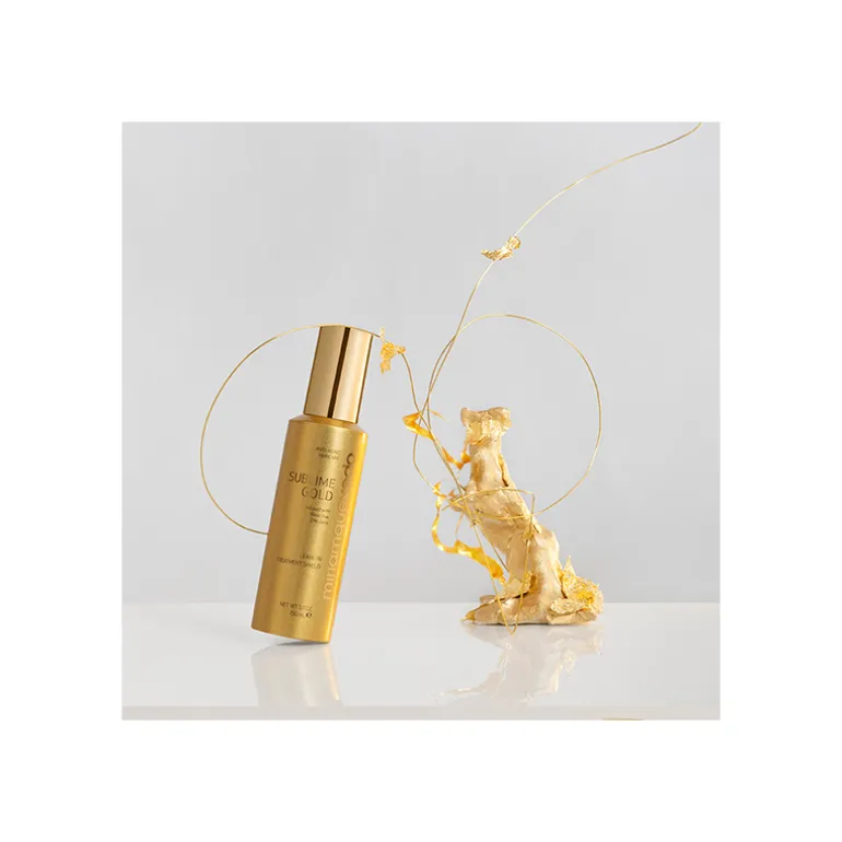 Formule exquise et innovante enrichie d’une concentration sans précédent d’or 24k de 3 types : bioactif, micronisé et en paillettes, qui agissent comme un agent protecteur contre le vieillissement, donnant aux cheveux une sublime luminosité et optimisant la bio-distribution de nos sublimes principes actifs permettant leur absorption optimale.